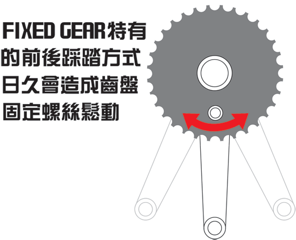 車輛各部份零件的強度及耐用性需求更加之高,其中承擔全身重量的曲柄組越相形重要早期street玩家對於曲柄改裝首選以BMX CR-MO鋼腿改裝,但因FIXED GEAR獨特的踩踏方式(其特性會有前後踩動)容易造成大盤固定螺絲鬆動